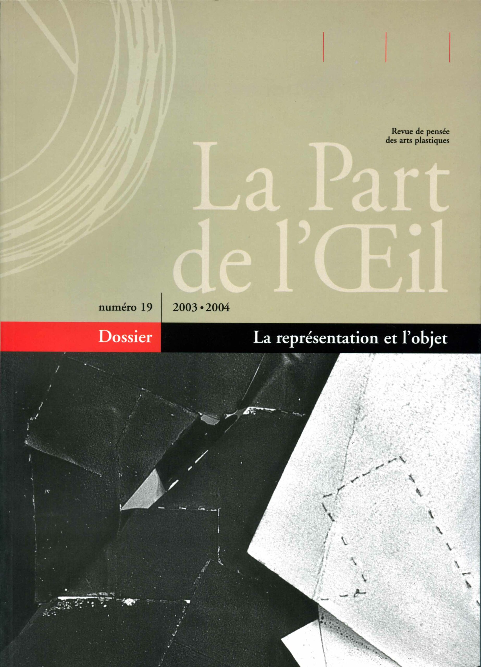 La Part de l’Œil 2003 = La représentation et l’objet, La Part de l’Œil 19, 272 p.