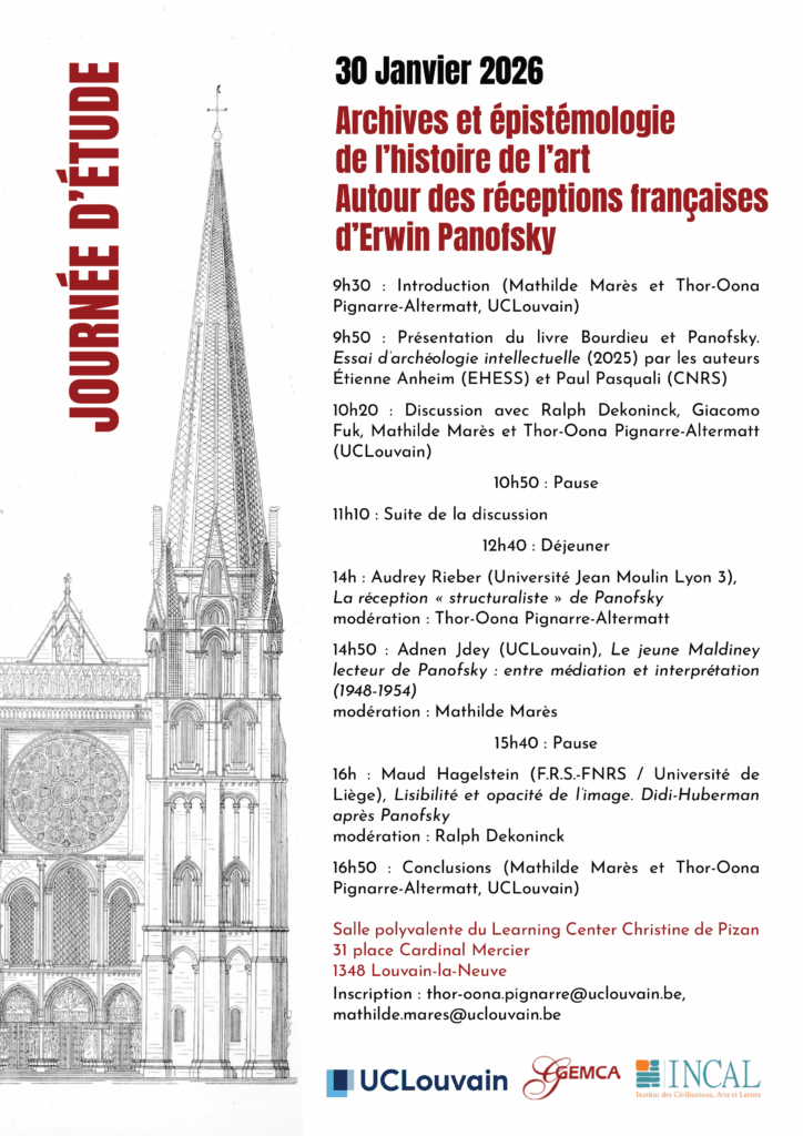 Journée d’étude « Archives et épistémologie de l’histoire de l’art. Autour des réceptions françaises d’Erwin Panofsky », organisée le 30 janvier 2026 à Louvain-la-Neuve (salle polyvalente du Learning Center Christine de Pizan) par le GEMCA.